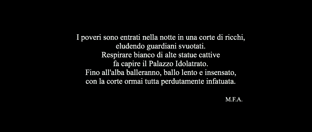Poveri entrano di notte in corte di ricchi (Uso di sagome “si come le figure di un presepe eterno”) – Paupers Entering a Rich Man’s Courtyard at Night